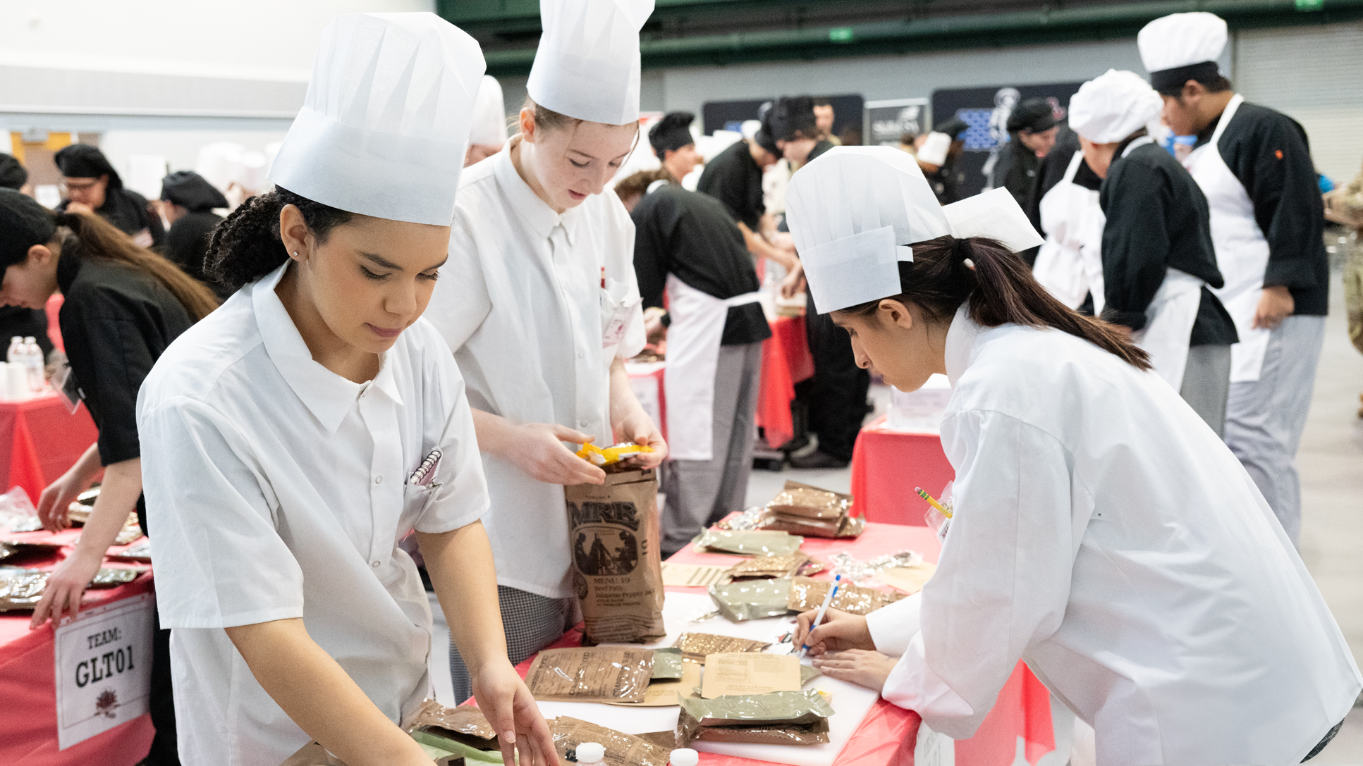 Blue Hills Regional Technical High School culinary students competed in the MRE Challenge, transforming military Meals, Ready-to-Eat into creative gourmet dishes.