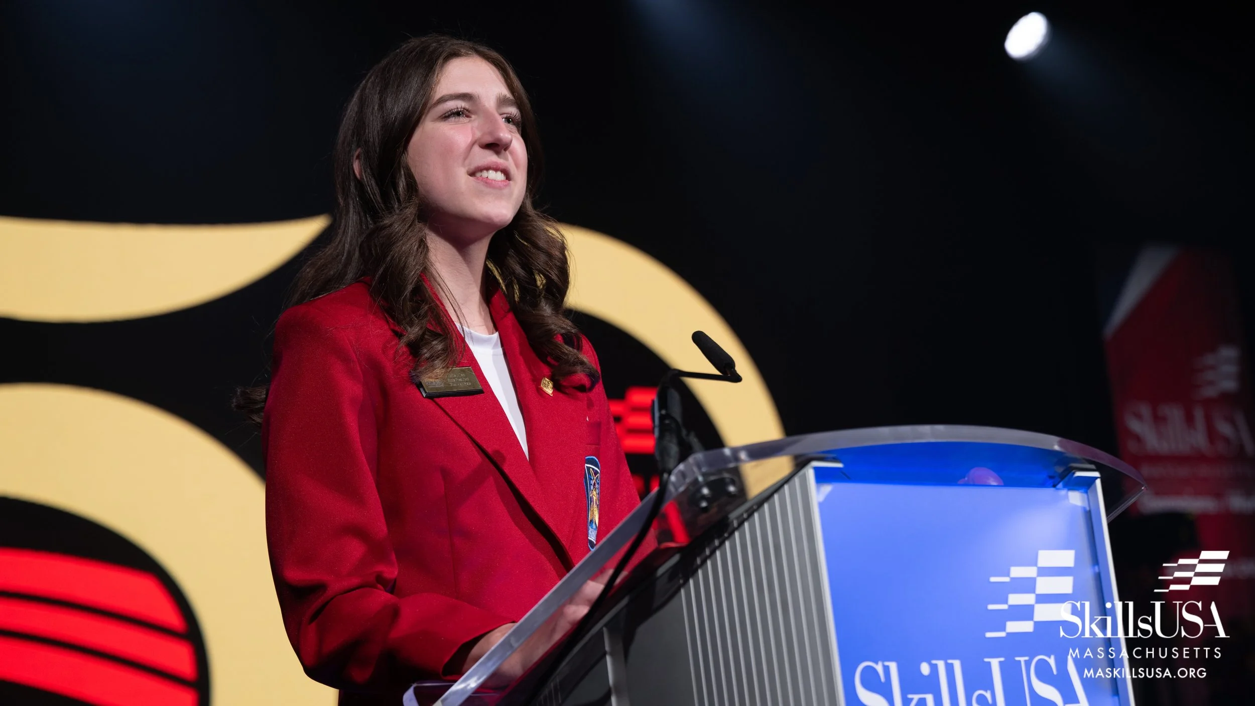 When Kallie Allen walked into her freshman year at Blackstone Valley Technical High School, she knew her schedule would include a career course – but she didn’t know a thing about SkillsUSA Massachusetts.